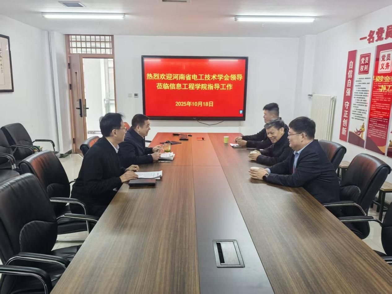 10月18日,河南省电工技术学会荣誉理事长崔光照、秘书长安小宇一行莅临信息工程学院开展调研交流。院长李国厚、副院长白林锋、副院长曲培新等参加座谈。