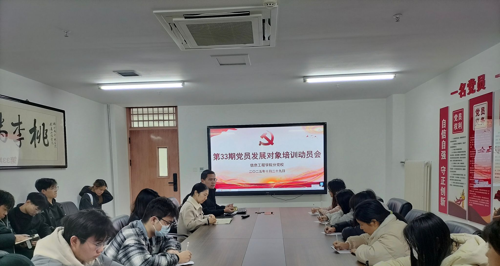 10.29日,信息工程学院在弘文楼404会议室召开第三十三期党员发展对象培训动员会。学院党委副书记王明艳、团委副书记林海波以及30余名党员发展对象参加了此次会议。会议由林海波主持。