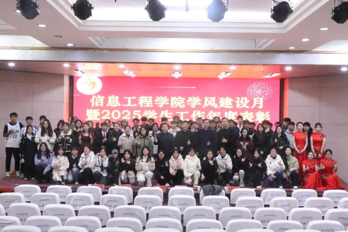 为全面总结2025年学生工作成果,树立先进典型,12月17日,信息工程学院于图教201会议室隆重举办学风建设月暨2025年度学生工作表彰大会。学院全体领导班子、辅导员出席大会,300余名师生代表共同见证这一荣耀时刻。