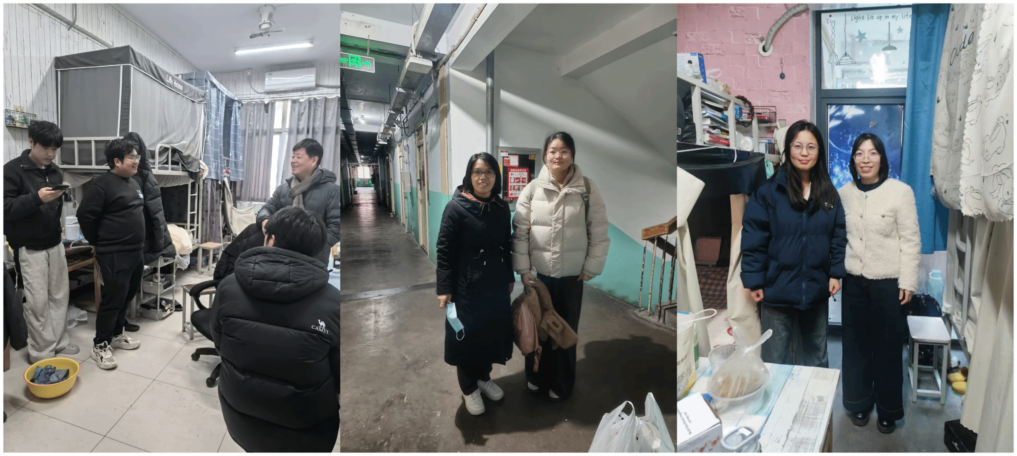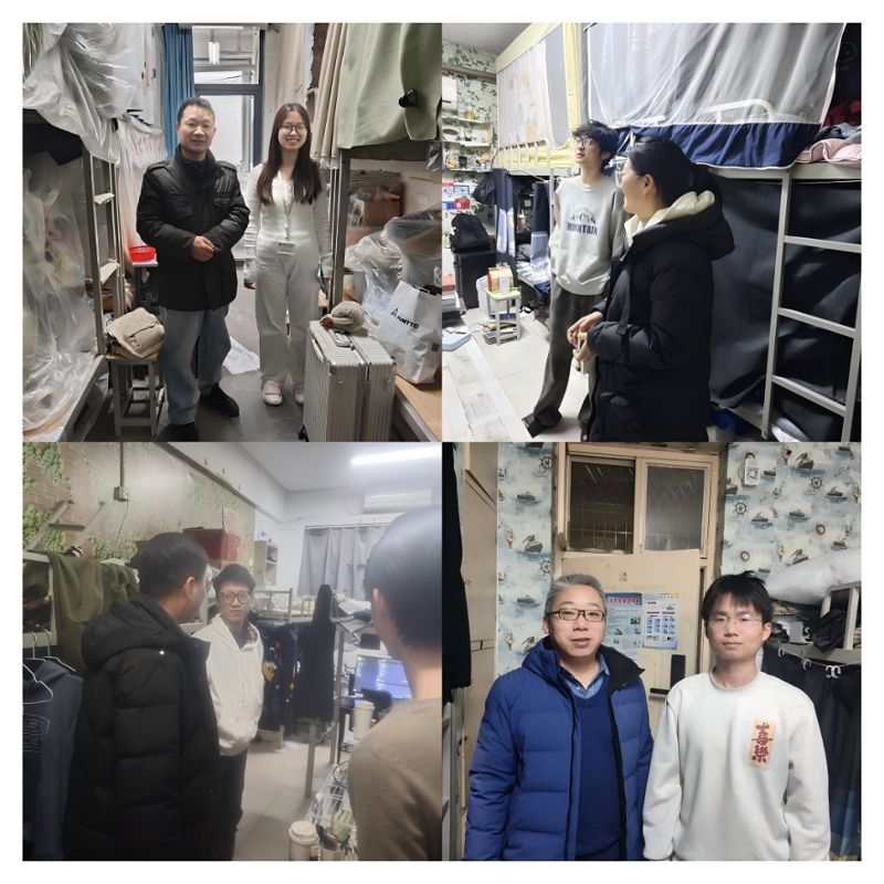 1月18日至20日,信息工程学院全体学工队伍及班主任开展全覆盖式宿舍走访以及送别宿舍最后离校学生工作。检查过程中,老师们与未离校学生亲切交流,了解未离校原因及离校时间,并叮嘱大家因雨雪天气,返家途中注意出行安全。和最后一位离开宿舍的学生一同确认宿舍水电门窗锁的情况,协同学生一起切断电源、锁好门窗,确保宿舍安全。