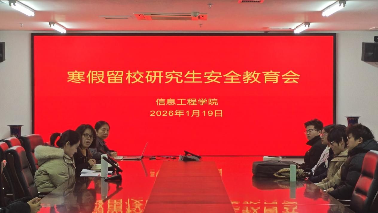 根据学校寒假期间学生管理工作部署,为切实保障寒假留校研究生的人身财产安全,进一步规范留校学生管理工作,2026年1月19日,信息工程学院在弘文楼413会议室召开寒假留校研究生安全教育会议。副书记王明艳、副院长冯小燕、辅导员刘柳以及留校全体研究生参加了会议。会议由冯小燕主持。